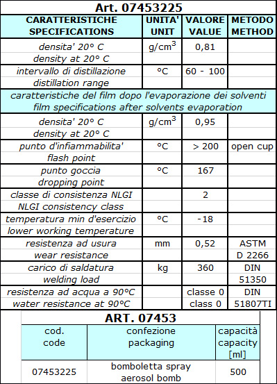 With grease viscous aspect and white colour, composed by fine particles of PTFE in white lithium grease, it forms a thin and persistent film.