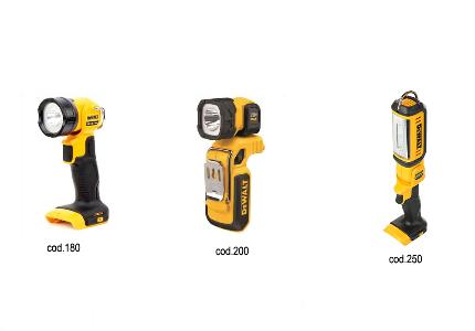 Cordless flashlight DeWalt DCL040, DCL044, DCL050 with rechargeable battery 18 V.