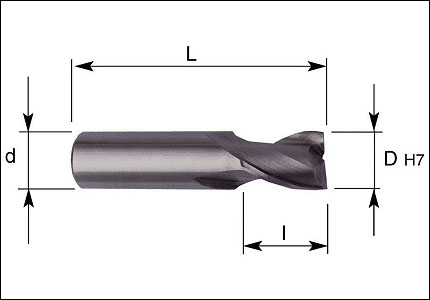 Fresa a 2 taglienti per cave in tolleranza H7, materiale HSS-Co8,5% sinterizzato con finitura lucida, UNI 8254, DIN 327B, ISO 1641/I. Profilo del tagliente N per finitura di materiali medio-legati, serie extracorta, gambo cilindrico; gambo Weldon o filettato fornibile su richiesta.
