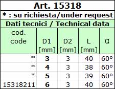 Fresa rotativa di forma KSJ conica 60°, gambo mm 3, serie extracorta simile a DIN 8033. Materiale HM, tagliente universale tipo 6 a doppio taglio incrociato adatto per quasi tutti i materiali metallici, anche per acciai temprati e resistenti alla corrosione; altre dimensioni, tipi di taglienti ed eventuale rivestimento disponibili su richiesta.