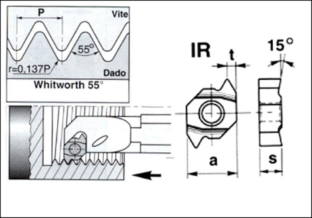 Inserto X21.83 IR per filettatura Whitworth 55°, esecuzione interna destra. Profilo A: il rasamento della cresta viene eseguito prima del taglio del filetto. Rivestito PVD KR5420, classe ISO P20, M15, K15, S15.