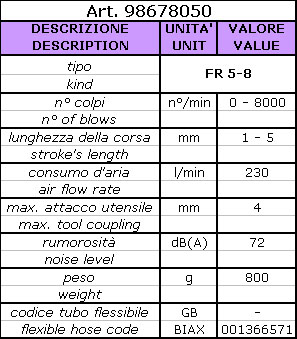 Limatrice angolare Biax FR 5-8 con cadenza dei colpi regolabile 0 - 8000 n/min. Lunghezza della corsa regolabile 1 - 5 mm, supporto per le lime non ruotabile, valvola a leva, direzione posteriore dello scarico d'aria, portautensile con vite di serraggio. Fornita con tubo.