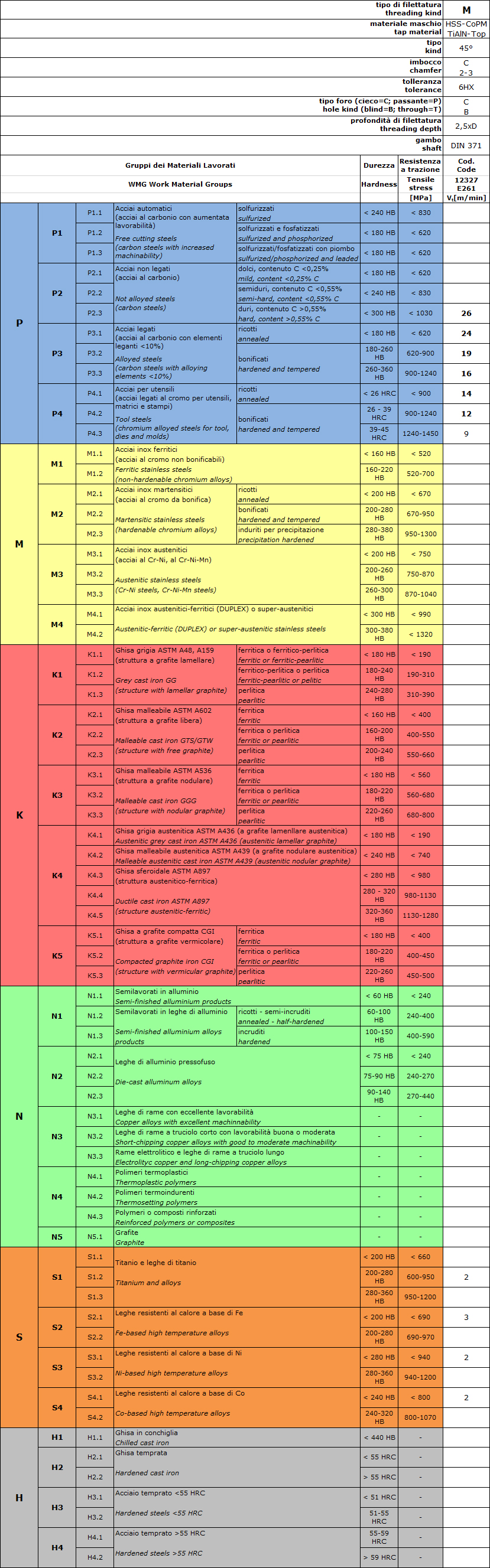 | 12327060 | NR | MASCHI E261 M 6,0X1,00 C 45° rosso DIN371 HSS-CoPM + TiAlN Top ** | |