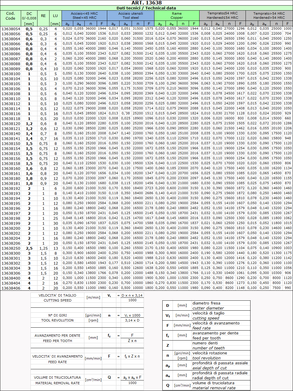 | 13638161 | NR | MICROFRESE 13638 1,6-20 R0,80 l.1,40 Z.2 Emisferiche HSC HM HSC Skin3 | |