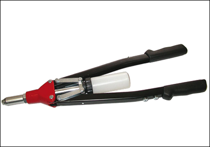 Pinza rivettatrice a leve lunghe per uno sforzo limitato e per usi in posizioni di difficile accesso, con 3 testine intercambiabili.