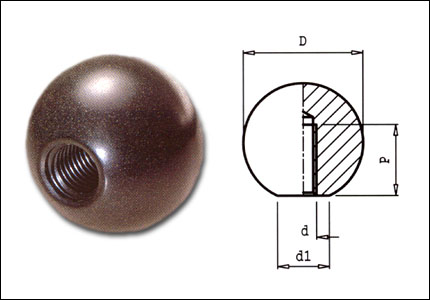 Pomolo a sfera con foro cieco filettato