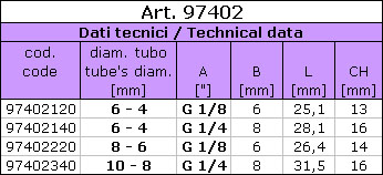 cilindrico per tubi in materiale plastico PA6, PA11, PA12, polietilene, poliuretano, PTFE, FEP, per aria compressa, fluidi e liquidi a bassa pressione. Corpo in ottone nichelato con guarnizione in NBR. Pressione e temperatura di esercizio sono determinate dal tipo di tubo impiegato.