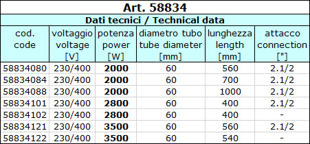 Cod. 122: resistenza interna per riscaldatori con cod. 121, 230/240 V, lunghezza mm 540.