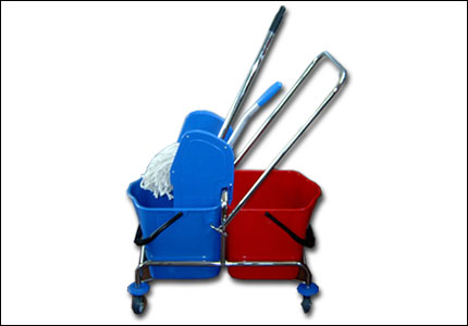 Set per mocio industriale formato da doppio secchio, mocio e strizzamocio. Capacità dei secchi 25 litri.