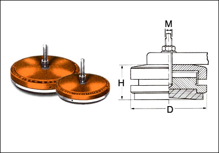 Supporto antivibrante a base tonda in gomma sintetica su corpo in ghisa. Utilizzato per il piazzamento, il livellamento e l'isolamento da vibrazioni di macchine utensili. Prodotto ordinabile solo su richiesta.