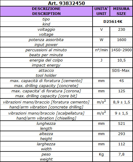 Dotazione: impugnatura laterale orientabile antivibrazione, valigetta T-STAK.