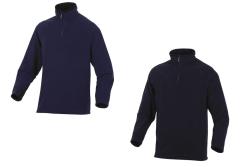 Micropile SWABI, in pile 65%, poliestere riciclato 35%, cotone riciclato; felpa calda, morbida, leggera, 320 g/m². Collo alto, chiusura con zip, fondo della manica e parte inferiore del corpo a bordo costa, 1 tasca esterna con zip, 2 tasche esterne con toppa. Colore blu-nero con bordino, patta e zip riflettenti per una maggiore visibilità.