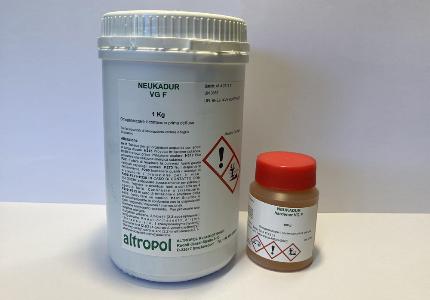 Composto di colata NEUKADUR VG F di colore nero a base di resina epossidica, fornito in confezioni da kg 1 con indurente da kg 0,1. Con caratteristiche di durezza, lavorabilità e media viscosità è adatta alla produzione di piccoli modelli in colata piena, o come mastice di riempimento per uso generale. prima di ogni utilizzo agitare bene la componente resinosa, altrimenti le cariche potrebbero depositarsi; mescolare il componente indurente con cura ma intensamente per garantire una bagnatura ottimale e prevenire inclusioni d'aria, si consiglia di far riposare il composto misto di resina da colata per alcuni minuti prima di colare in modo da permettere la fuoriuscita dell'aria eventualmente incorporata. La durata di 1000 g di composto è circa di 90 minuti a temperatura ambiente.