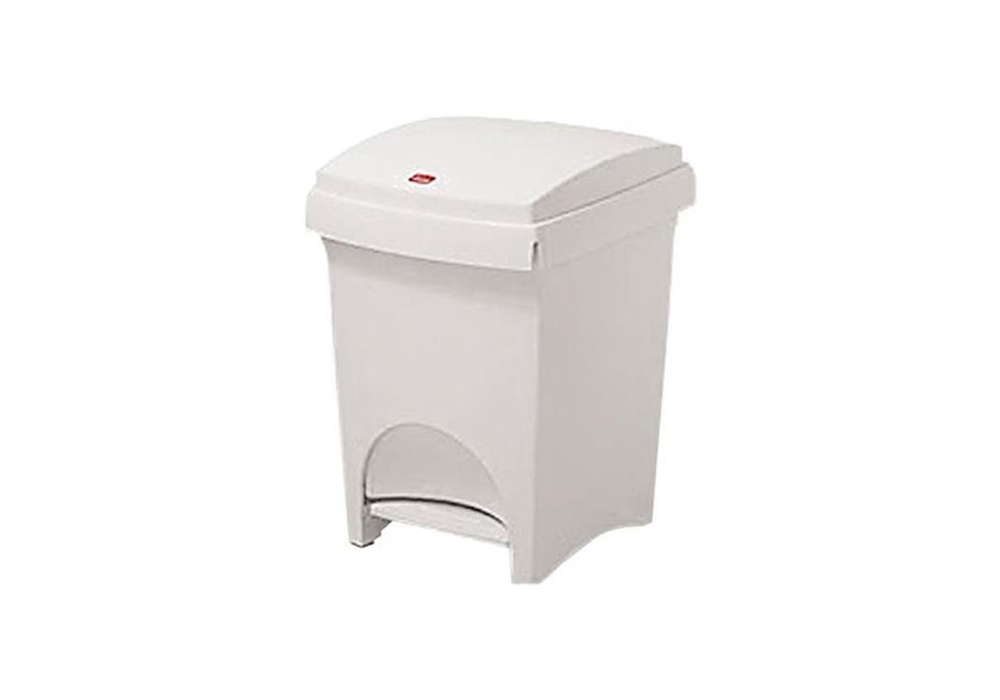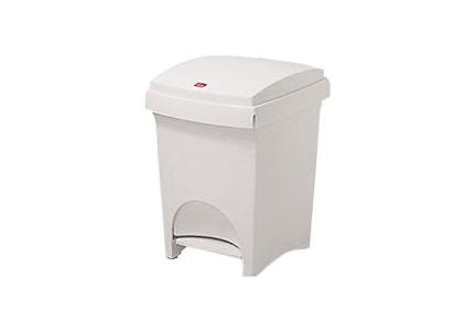 Pattumiera a pedale di colore bianco, capacità lt 18, dimensioni cm 29x34x41.