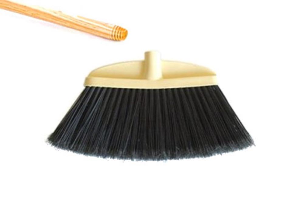 Scopa San Siro in PVC nero piumato con manico grezzo.