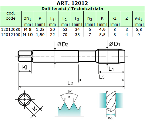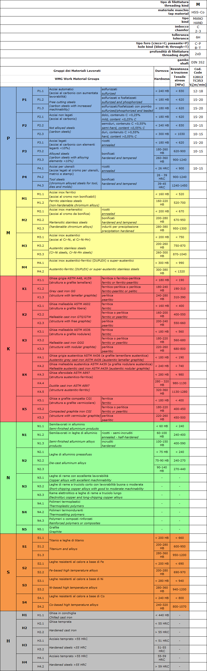 Serie di maschi a mano TC353, filettatura metrica M, per fori ciechi e passanti, scanalature diritte, DIN 352. Materiale HSS-Co per la lavorazione di acciai trattati termicamente. Articolo ad esaurimento.